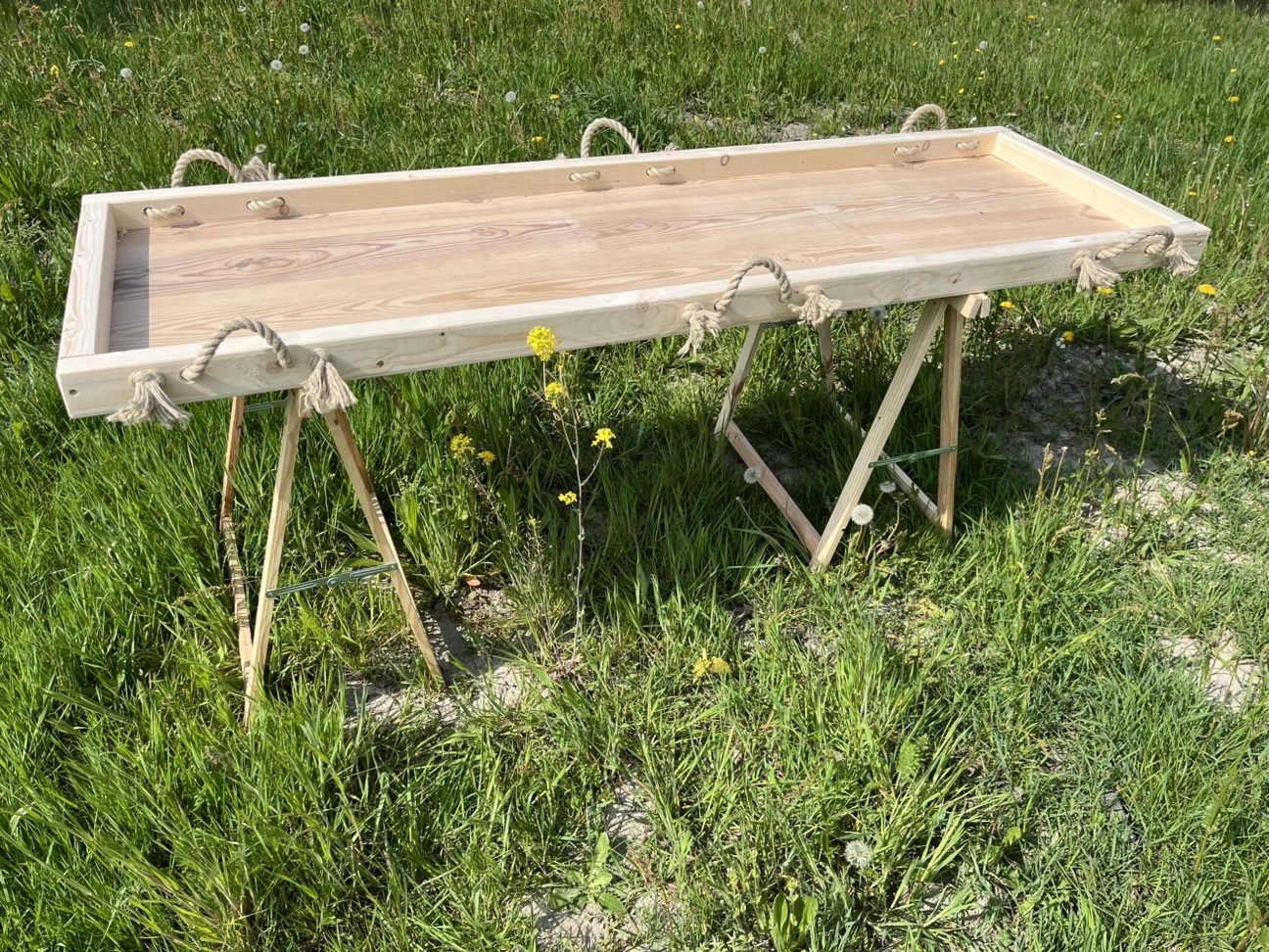 Draagbaar van grenen met handvatten van vlas - geheel afbreekbaar